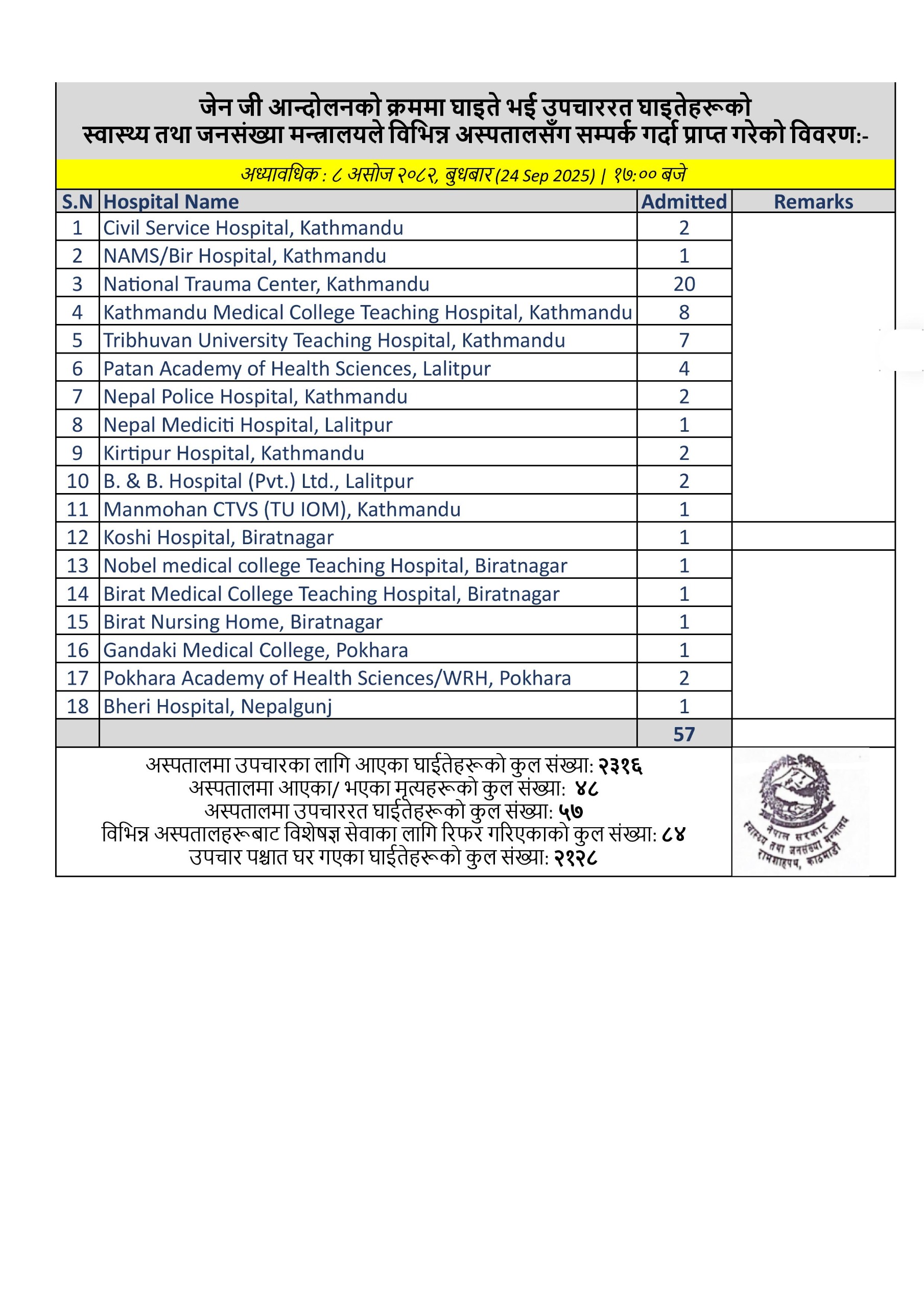 अद्यावधिक: मिति २०८२ आश्विन ८ गते बेलुकी ४:०० बजे सम्म