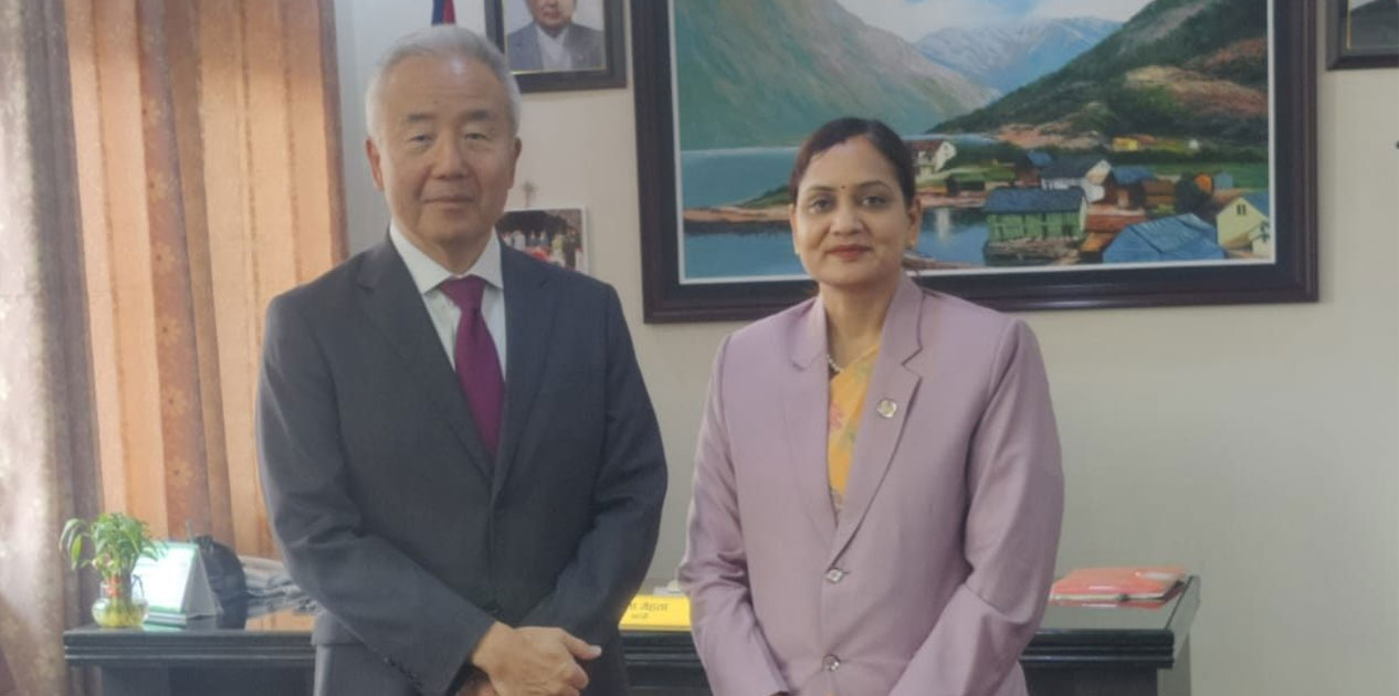 मा. स्वास्थ्य तथा जनसंख्या मन्त्री निशा मेहता र नेपालका लागि जापानका राजदूत मायदा तोरुको बीच शिष्टाचार भेटघाट ।